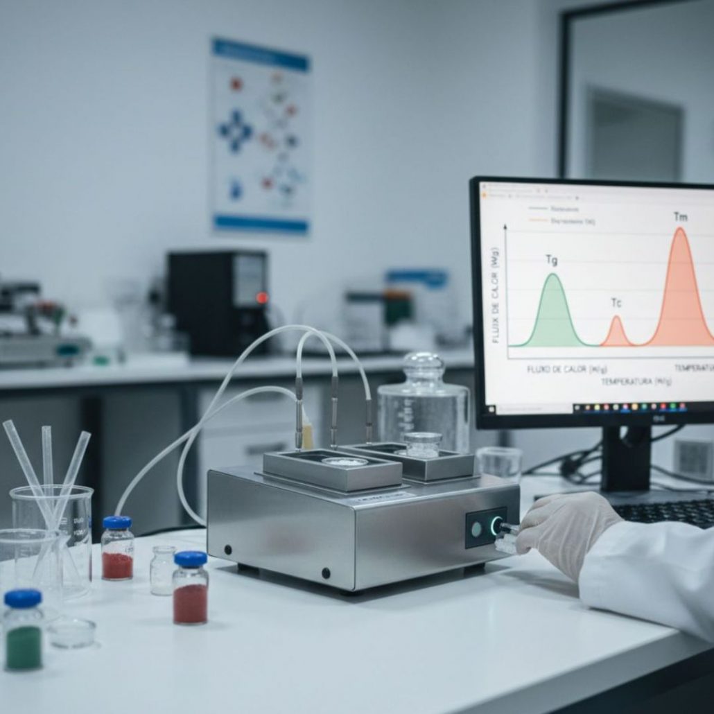 Avaliação de Cristalinidade: A área sob o pico de fusão no gráfico de DSC é proporcional à cristalinidade do material. Essa análise é usada para comparar diferentes lotes ou materiais reciclados.